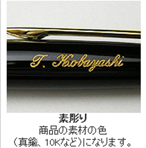 アルミのペンなどは銀色(白っぽい)になります。(アルミ素彫り)