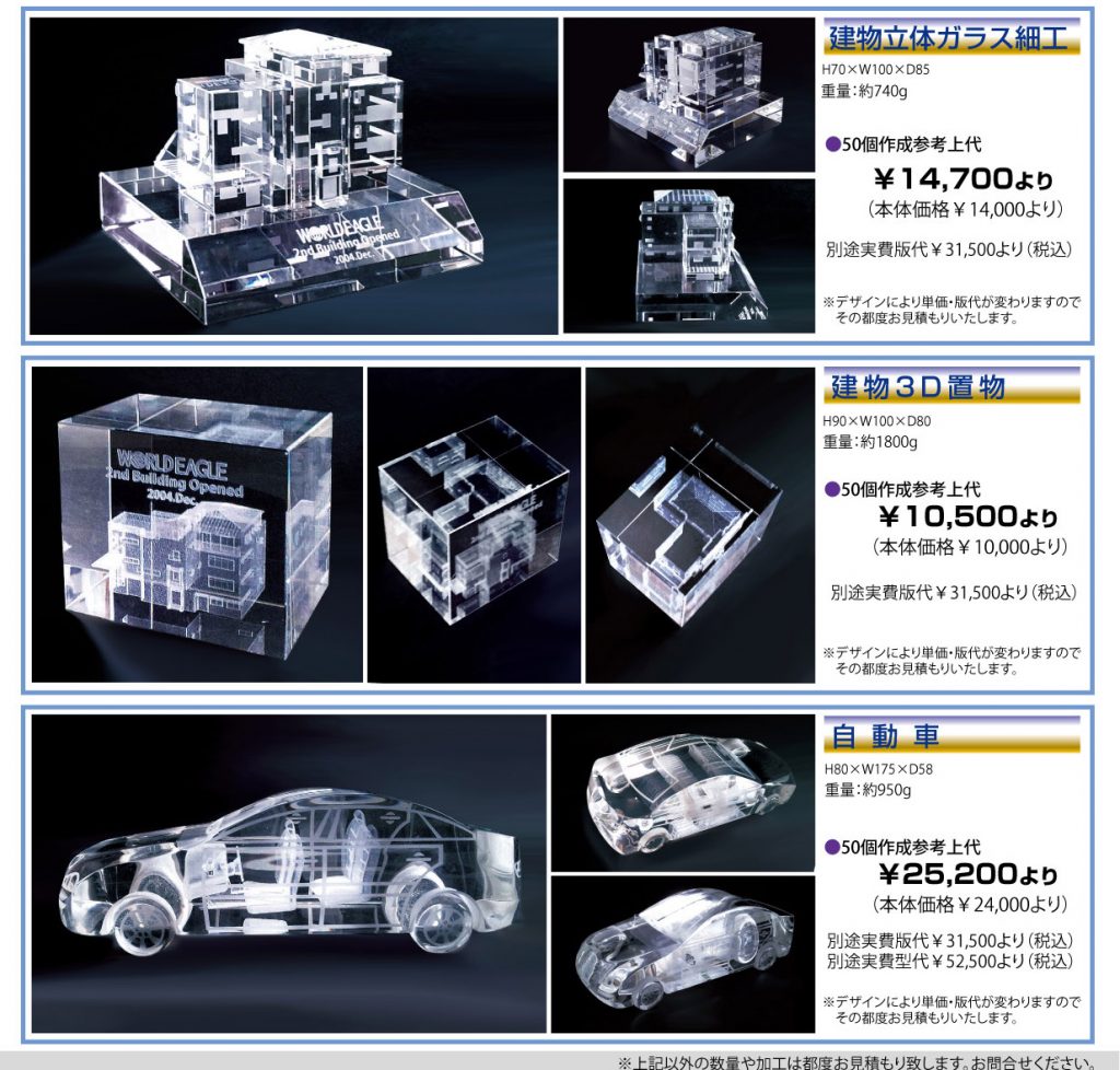 クリスタルのトロフィーや表彰楯にも彫刻可能です。