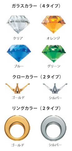 上のガラス部分は4色から、真ん中のパーツと本体は、金と銀の2色から選べます♪