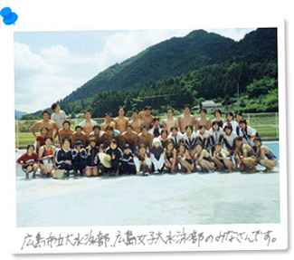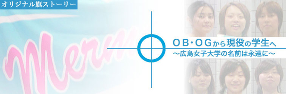 『きっかけはOB同士5人くらい集まって、居酒屋で話している時、最後に部旗を創ろう!という話にはなったのですが、忘れかけていたんです。6月後半に「そういえば旗の件はどうなった?」という話になったので、すぐに仲間に電話しました。今から間に合うのかな?と話していて、とりあえずインター ネットで調べて出来そうだったら創ろうということに決まったのです。大学の名前が使える最後の年に、あえて部旗を創ったのは、学生時代を共有した広島女子大学水泳部との思い出を生涯忘れないため、いつかこの部旗のもとにみんなで集まろうという皆の強い思いがあったからです。 そして、納期を特に急が せてしまったのは、8月上旬全国大会に広島女子大から一名出場することが決まっており、それになんとしても間に合わせたかったからです。小さな部ですが、最後に広島女子大の名前を全国の人たちの記憶に残しておきたいという願いを皆が強く思っていました。』