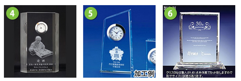 逆に④や⑤のような時計付きで彫刻面が小さい商品などはあまり文字が入れられません。