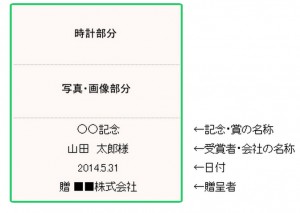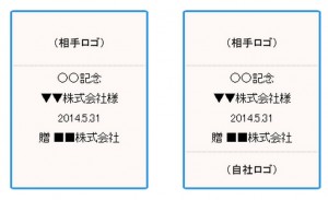 記念品を贈呈する相手のロゴを入れたい場合は下記のようにする場合が多いです。