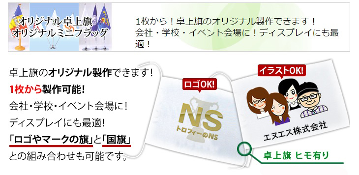 2)卓上旗立台(ポール)を持っていて、台に合うサイズの旗がほしい。