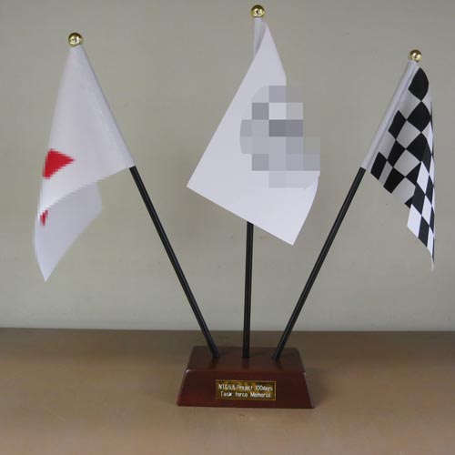 卓上に置けるオリジナルデザインのミニフラッグ3本+プレート付き立て台を作りました!