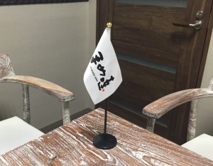 大きなサイズの社旗は社内に飾り、ミニフラッグは社長のデスクに飾っています。