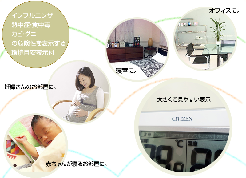 商品名:シチズン・時計付き温湿度計 ライフナビD200A