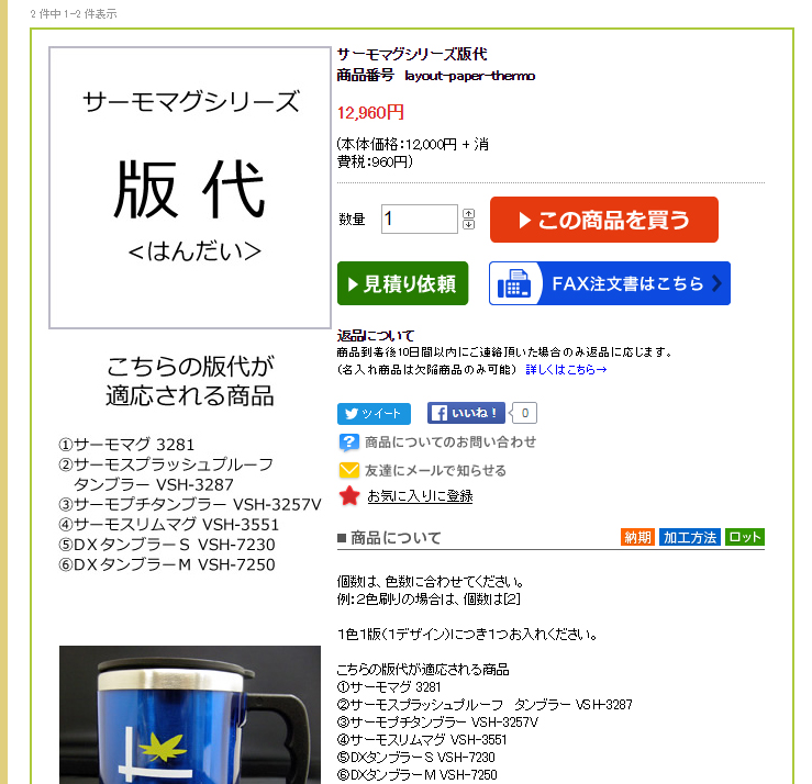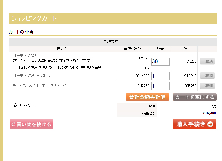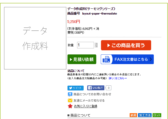 次は印刷する為のデザイン版代・データ作成料をカートに入れます。