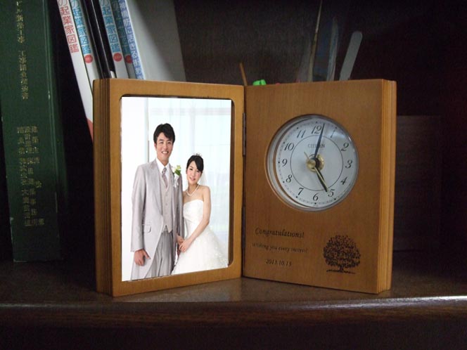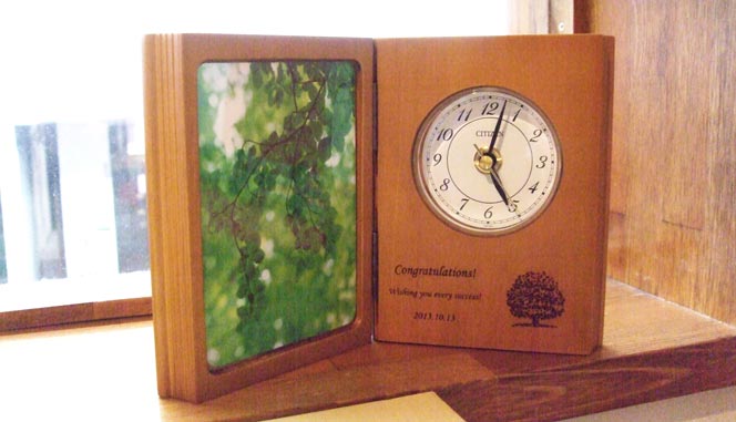 商品:シチズン製クォーツ・ブック型木製フォトフレームクロック
