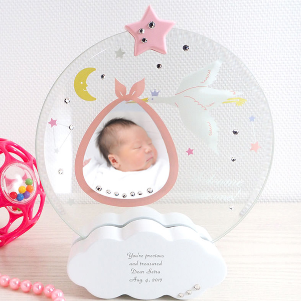 ベビーフォトフレーム・コウノトリ・ピンク¥5,000-+消費税