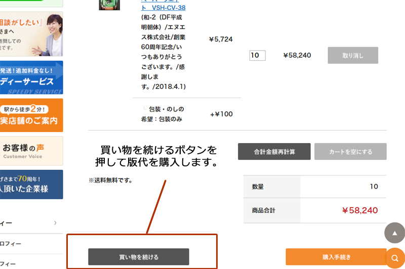 【買い物を続ける】から再度ご購入をお願いいたします。