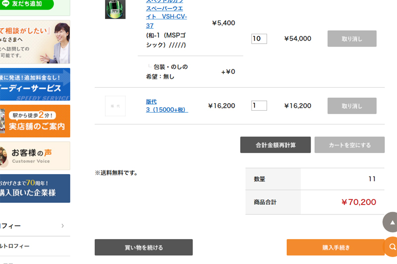¥54,000- + ¥16,200- = ¥70,200-(税込・送料は1万円以上は無料)