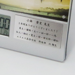 簡単に入れば記念品のどこかに任意のメッセージが刻まれた(印刷された)記念品の事ですね。