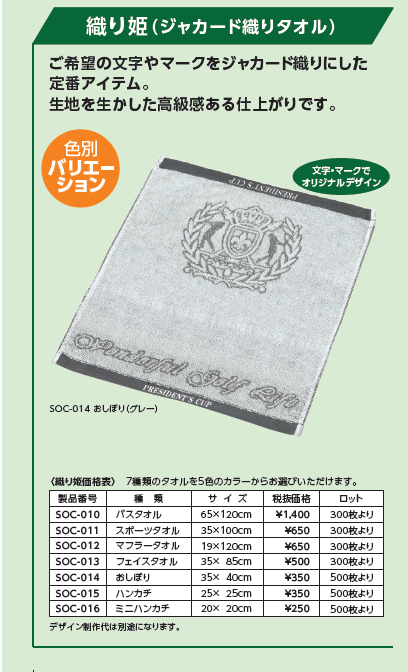 消耗品と違い、何度も使えるタオルは記念品で喜ばれます。