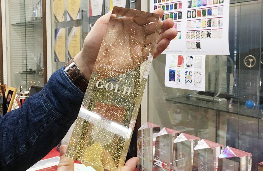 こちらはラメをアクリルトロフィー内部に封入されています!