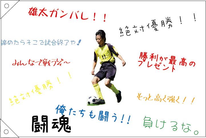 中央に応援する選手などをプリントして、その周りを寄せ書きで埋めるパターンです。