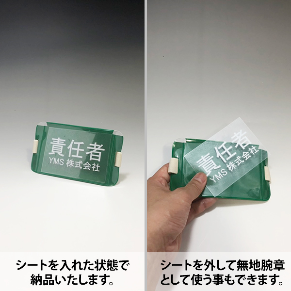 で作成できます。しかも差込式ですので、シートを外して通常の腕章として使用する事も可能です!