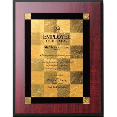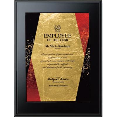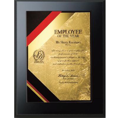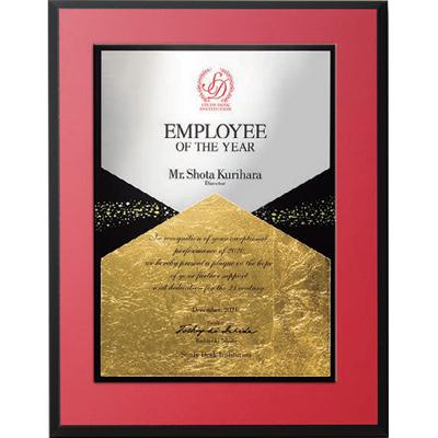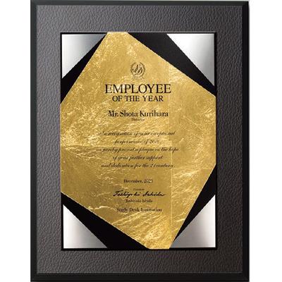 金属プレートに金沢泊(金箔や銀箔)を匠の技術で貼り付け、その上からUVインクジェット印刷をするという手間隙をかけたプレミアムな表彰楯です。