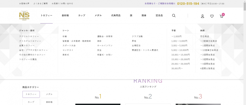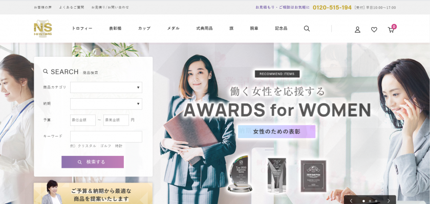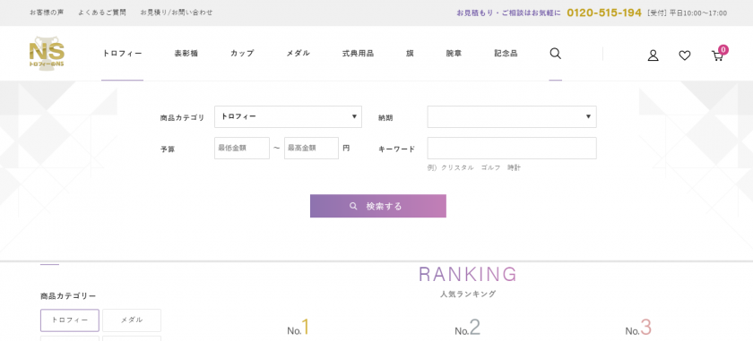 他のトロフィーのサイトにはない、あたらしい感じをイメージして仕上げました。