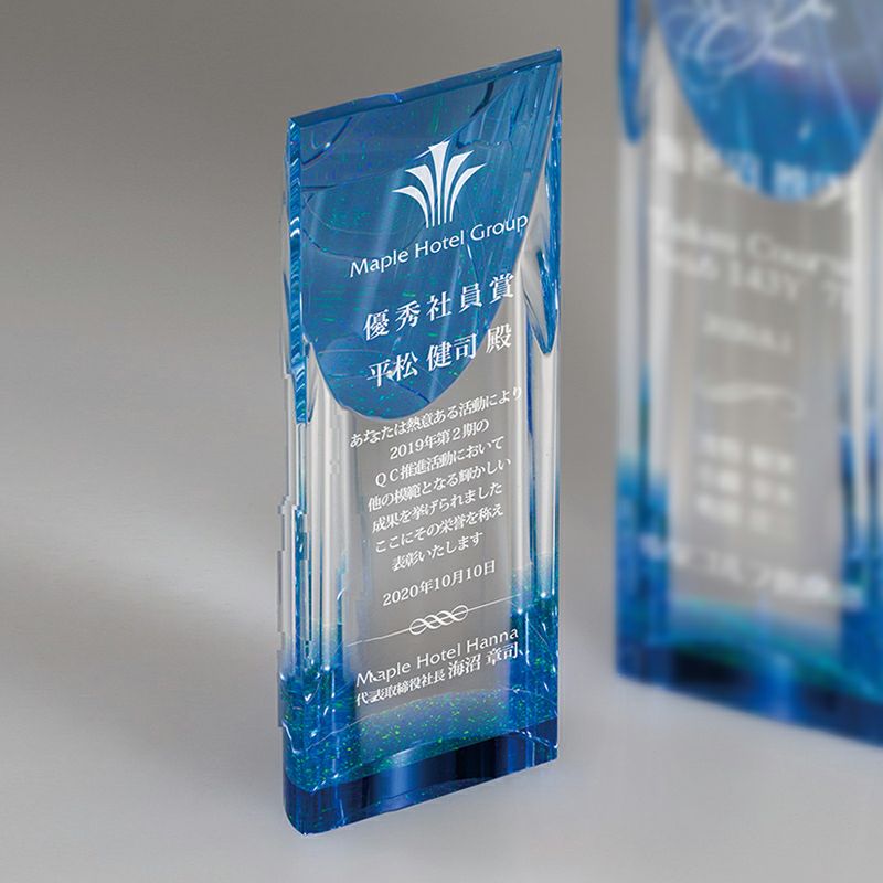 人工宝石(オパール)を使ったガラス製のトロフィー。表彰やコンクールに最適。