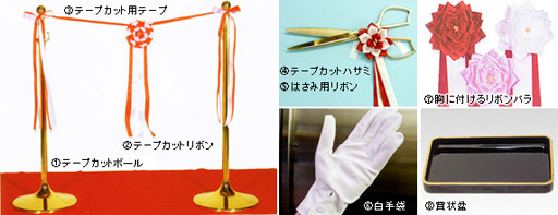 | ④テープカットハサミ | テープカット後、テープカットした来賓に進呈することが一般的です。 |